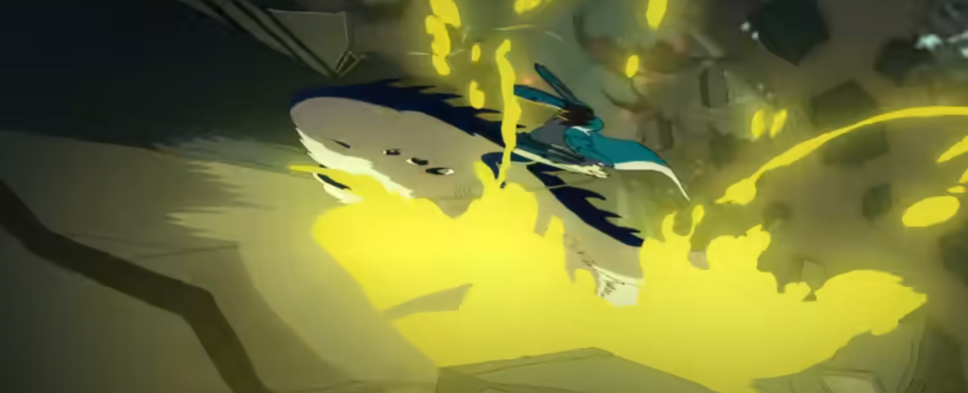 이런 식으로 프레임 중간에 애니메이션이라서 되는 기법이 잘 녹아져 있습니다. 작화연출은 서로가 다른 방향이지만, 그 방향의 극을 서로 이뤄내 관객들의 도파민 니즈를 충족시킨 것 같습니다. [귀멸의 칼날]같은 경우는 ‘애니메이션으로써 보여줄 수 있는 것은 전부 보여주겠다!’의 일념이 보이듯, 휘몰아치는 무한성의 3D구조와 캐릭터간의 전투가 한 프레임 한 프레임 전부 극화체 만화처럼 풀로 묘사되며, 이펙트는 화면 전체를 메꿉니다. 정말 한 편의 디즈니 작품을 보는 것 같은 생동감과 묘사들이었습니다. 하지만 [레제편]은 ‘애니메이션이라서 가능한 연출기법과 생략을 통한 속도감을 극한으로 깎겠다’라는 형태가 보입니다. 비슷한 예로는 [강철의 연금술사]의 전투씬, [나루토], 미야자키 하야오의 [루팡 3세]같은 포지션 입니다. [귀멸의 칼날]과 다르게 동화(動画)에 맞추어 캐릭터를 구기거나 단순화 하고, 컷 프레임을 미묘하게 잘라 붙여 순간이동 하면서 싸우는 것 같으면서도 선은 연결되어있는 시각효과를 보입니다. 두 작품 다 ‘애니메이션’의 장르 기법을 최대한 살리면서 영화관 자체를 하나의 어트랙션 공간으로 만들어 놓고, 관객들의 시각에 정보를 우루루 집어 넣습니다. [귀멸의 칼날]은 흐트러짐 없고 이해하기 쉬운 정보를 대량으로 주입하여 뇌가 부담을 느끼지 않고 어트랙션을 느끼며, [레제편]은 애니메이션이라서 일으킬 수 있는 착각과 생략을 뇌가 쉽게 보정하게 만들면서 또 다른 엔터테인먼트 감각을 느낄 수 있는 방법처럼 보입니다.